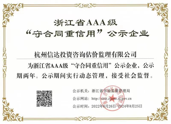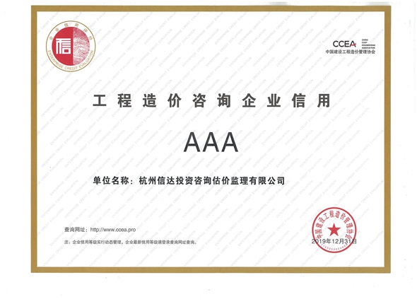 工程造價咨詢企業信用AAA級