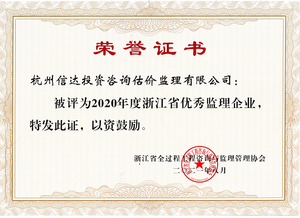 2020年度浙江省優秀監理企業