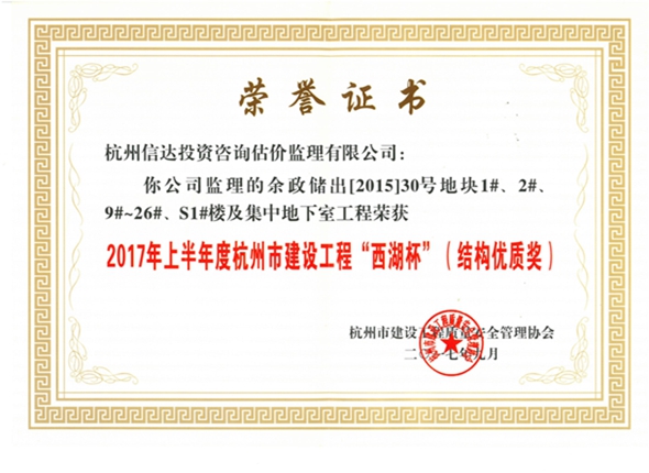 余政儲出【2015】30號地塊項目(杭州市2017年西湖杯優質結構獎)