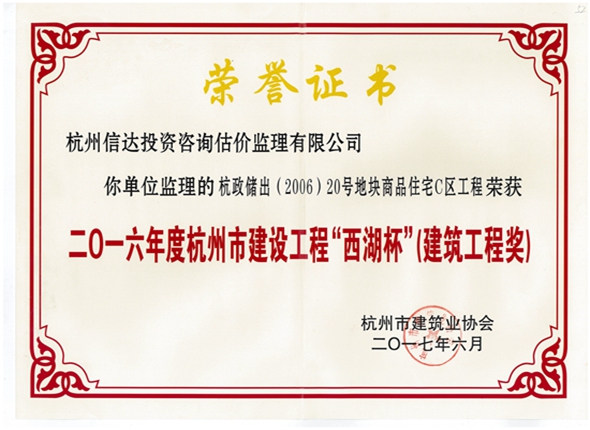 杭政儲出【2006】20號地塊C區塊(2016年度杭州市西湖杯)